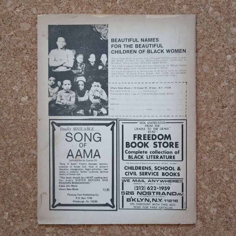 『Black News』誌。文化/教育機関としてブルックリンで設立された<EAST>が母体となっている、ブラック・コミュニティに向けた冊子。Afrikan Street Carnivalの広告やBob Marleyの記事などが掲載されています。