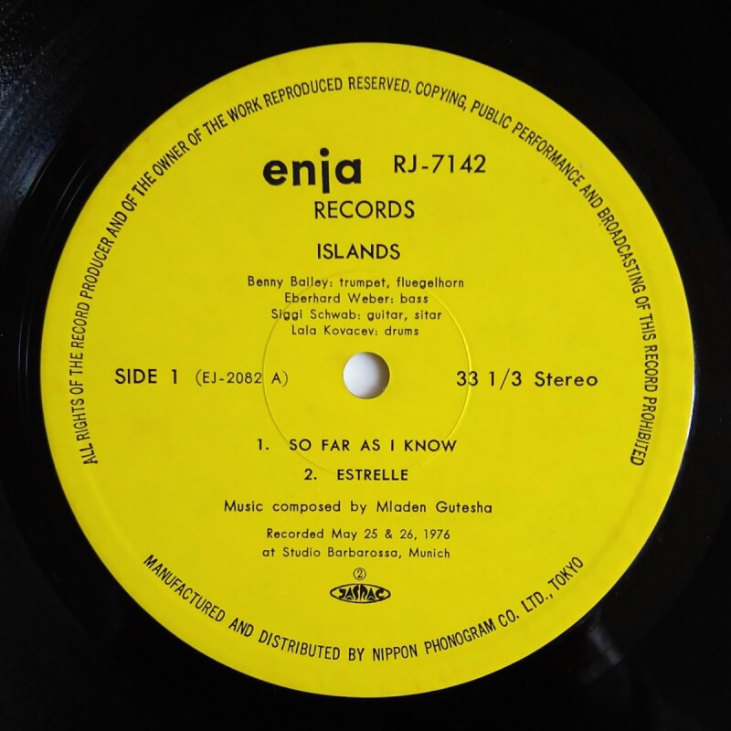| Label (Cat#) | Enja Records / Nippon Phonogram (RJ-7142) |
