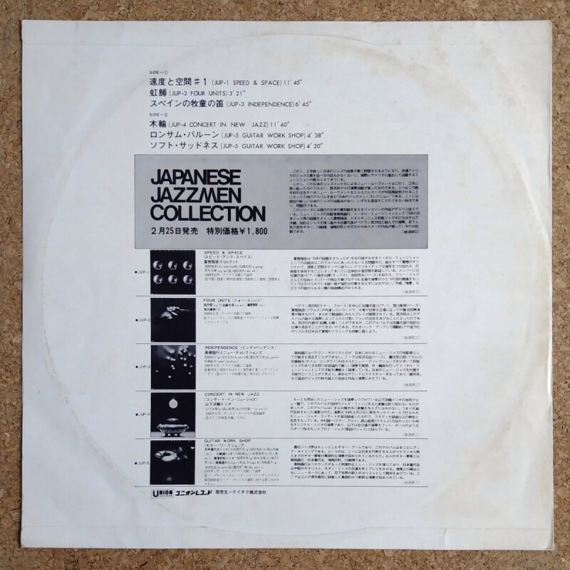 1970年前後にリリースしたフリージャズ作品を1970年代半ばに再発する際、プロモーション用に制作したダイジェスト盤。富樫雅彦『Speed & Space』から「速度と空間 #1」を、Four Units『Four Units』から「虹鱒」を、高柳昌行『Independence』から「スペインの牧童の笛」を、山下洋輔『Concert In New Jazz』から「木輪」を、V.A.『Guitar Workshop』から「Lonesome Balloon」と「「Soft Sadness」を収録。