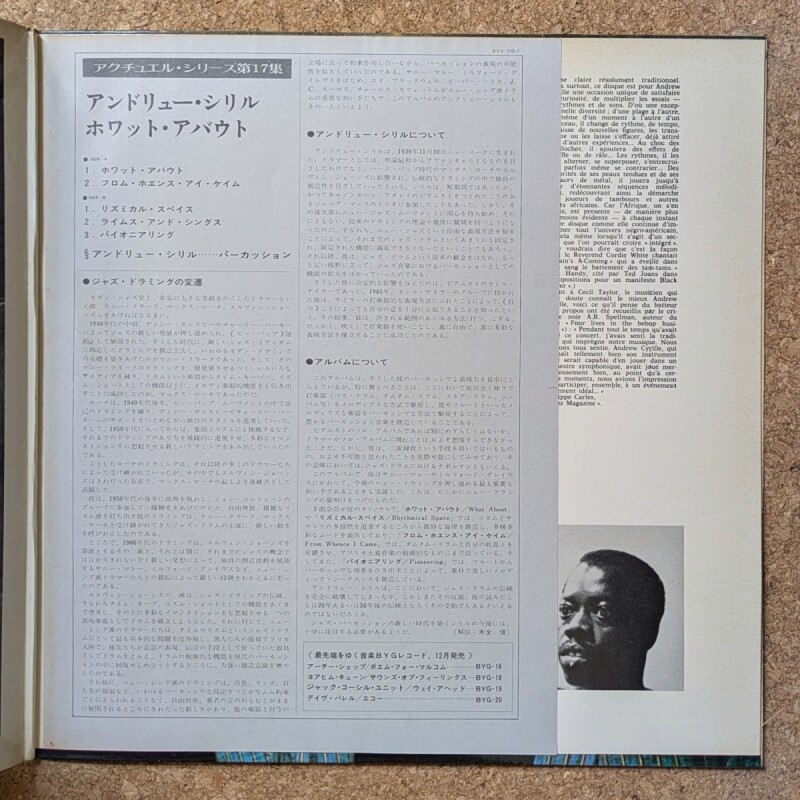 Cecil TaylorやMilford Gravesとの共演でも知られるフリー・ジャズ重要ドラマーのひとり、Andrew Cyrilleのフランス録音作品。「What About?」、「Rhythmical Space」、「Rims & Things」など、創造性豊かな演奏を聴かせます。素晴らしい作品です。
