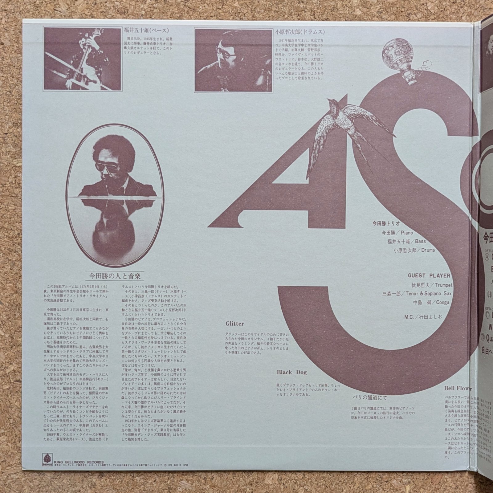 ハードバップからフュージョンまで、数多くの名作を生み出してきたピアニスト、今田勝のライヴ録音作品。美しいワルツ「Glitter」、ストーミーな大作「Bell Flower」、端正な「Little Step」、ファンキーでかっこ良い「World Line」、クールでスウィング感に満ちた「Qurter」などを収録。充実の内容です。2枚組で8曲を収録。福井五十雄、小原哲次郎、伏見哲夫、三森一郎などが参加。