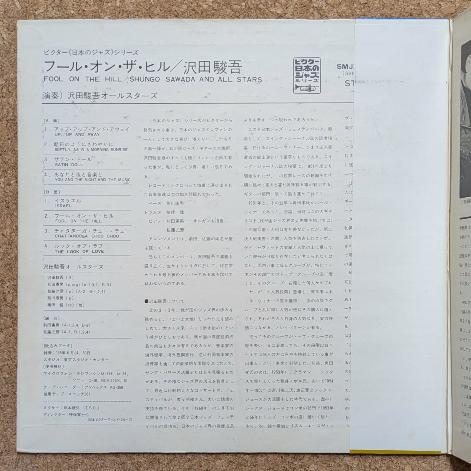 日本を代表するギタリストのひとり、沢田駿吾の作品。ビクター<日本のジャズ>シリーズの1枚です。軽快な「Up, Up & Away」、たおやかで味わい深い「Satin Doll」、端正な「Israel」、アレンジもかっこ良い「Chattanooga Choo Choo」、クールかつメロウな「The Look Of Love」など、全編素晴らしいです。前田憲男、佐藤允彦、猪俣猛などが参加。