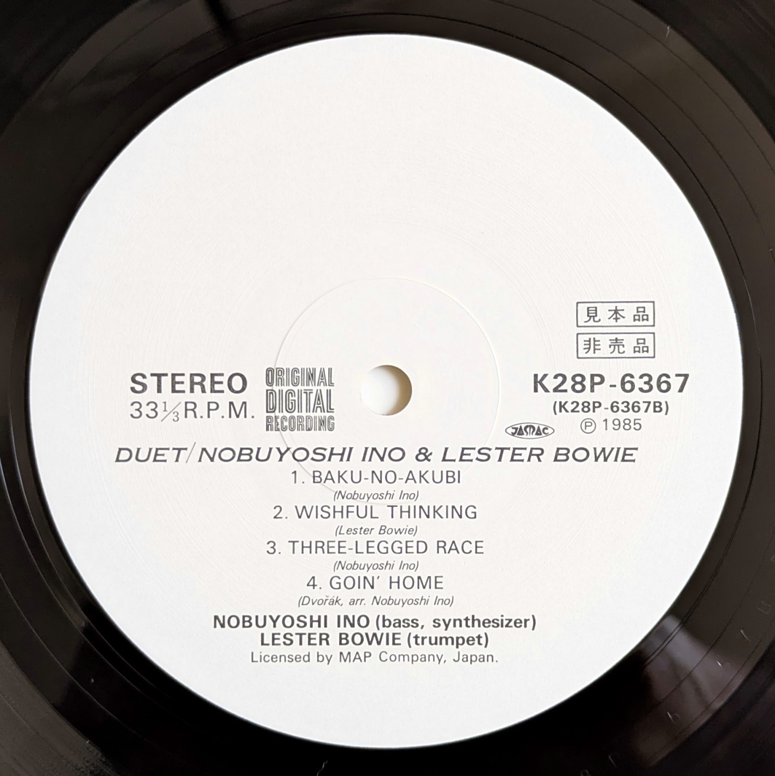 高柳昌行との共演などで知られるベーシスト井野信義と、Art Ensemble Of Chicagoの一員として活動するなど広く前衛ジャズのシーンで活躍したトランペット奏者Lester Bowieの共演作品。郷愁に満ちた「Kami-Fusen」や「Goin' Home」、アグレッシヴな「Fela」、味わい深い「Baku-No-Akubi」、揺らめくような「Wishful Thinking」、インプロヴィゼイショナルな「Three-Legged Race」など、全編素晴らしいです。
