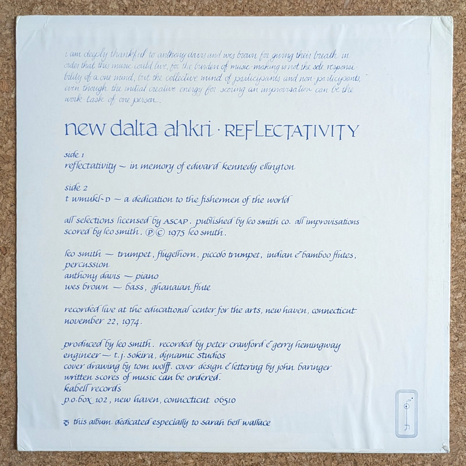 AACMの一員として活動するなど、長きに亘り前衛ジャズのシーンを牽引するトランペッター/作曲家、Leo Smithを中心としたグループの作品。Anthony DavisとLes Brownが参加。「Reflectativity」と「T. Wmukl-D」の2曲を収録。