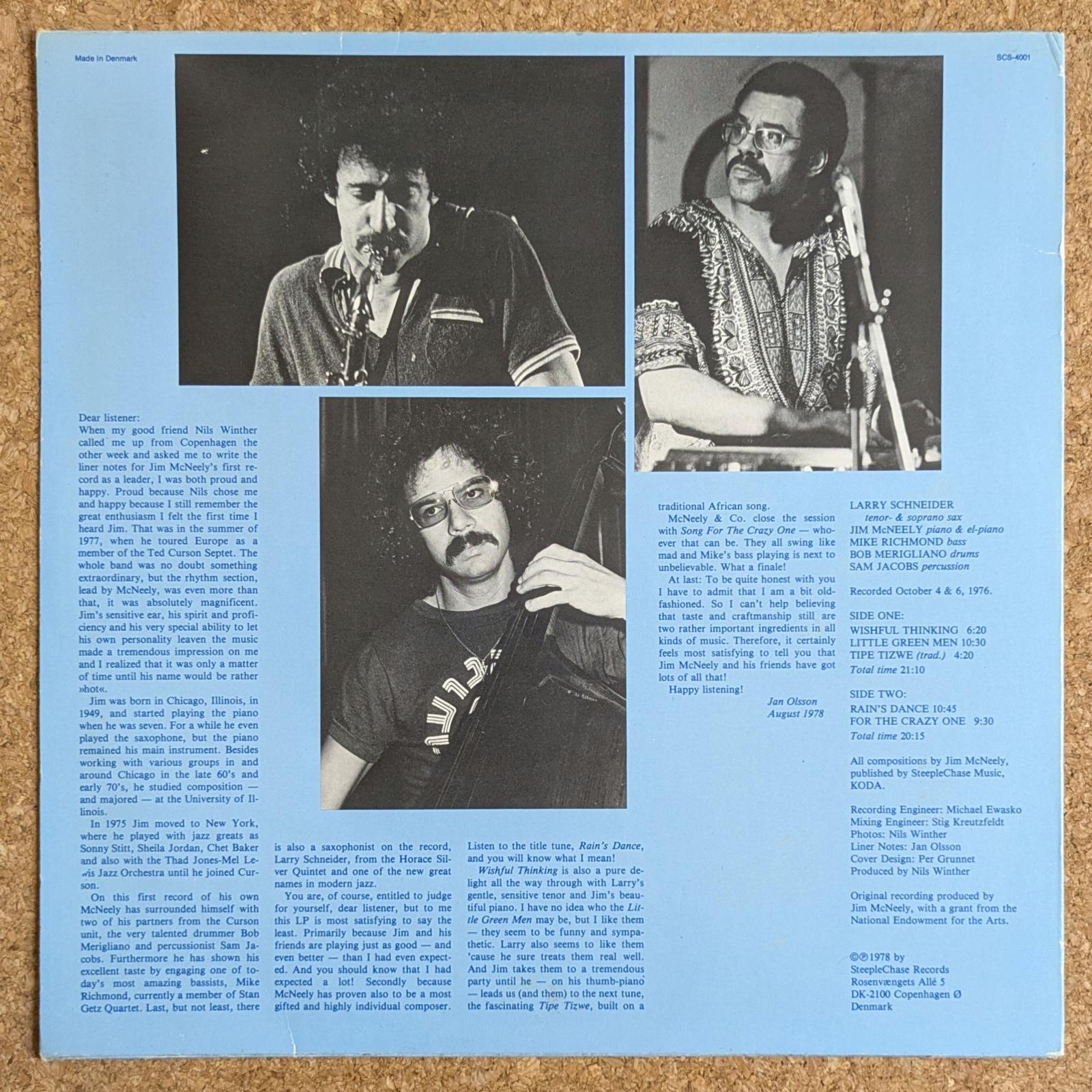 Ted Cursonとの共演などで知られるシカゴ出身のピアニスト、Jim McNeelyの作品。ヒップな「Little Green Men」、ムビラを起用した編曲も秀逸な「Tipe Tizwe」、エモーショナルで美しい「Wishful Thinking」などを収録。充実の内容です。Larry Schneider、Mike Richmond、Sam Jacobsなどが参加。