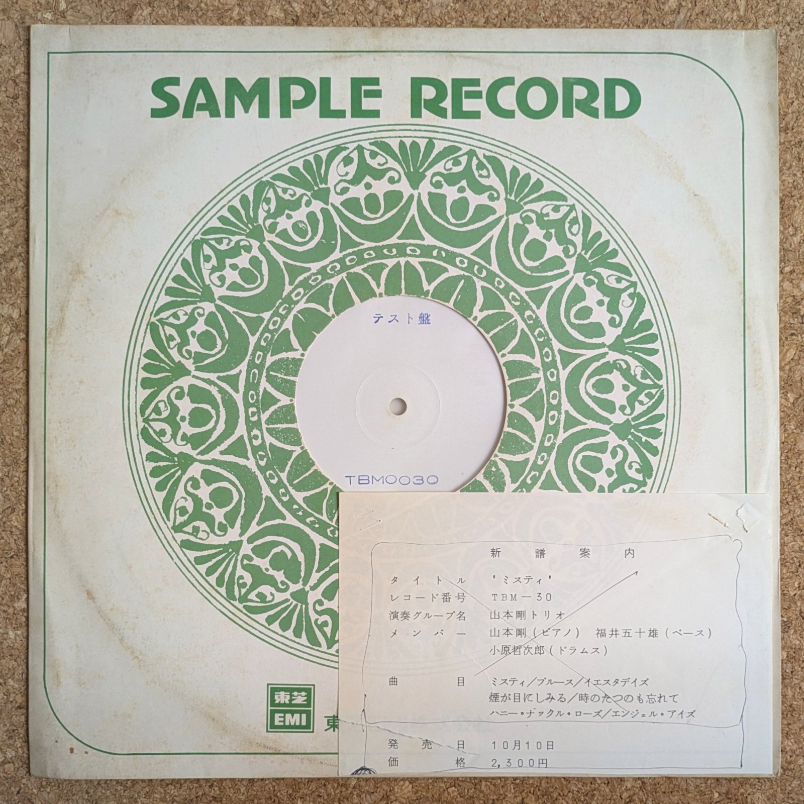 東芝のサンプルレコード汎用ジャケット。スレ、シミ、裏にテープ跡あり。<新譜案内>にホチキス穴、書き込みあり。