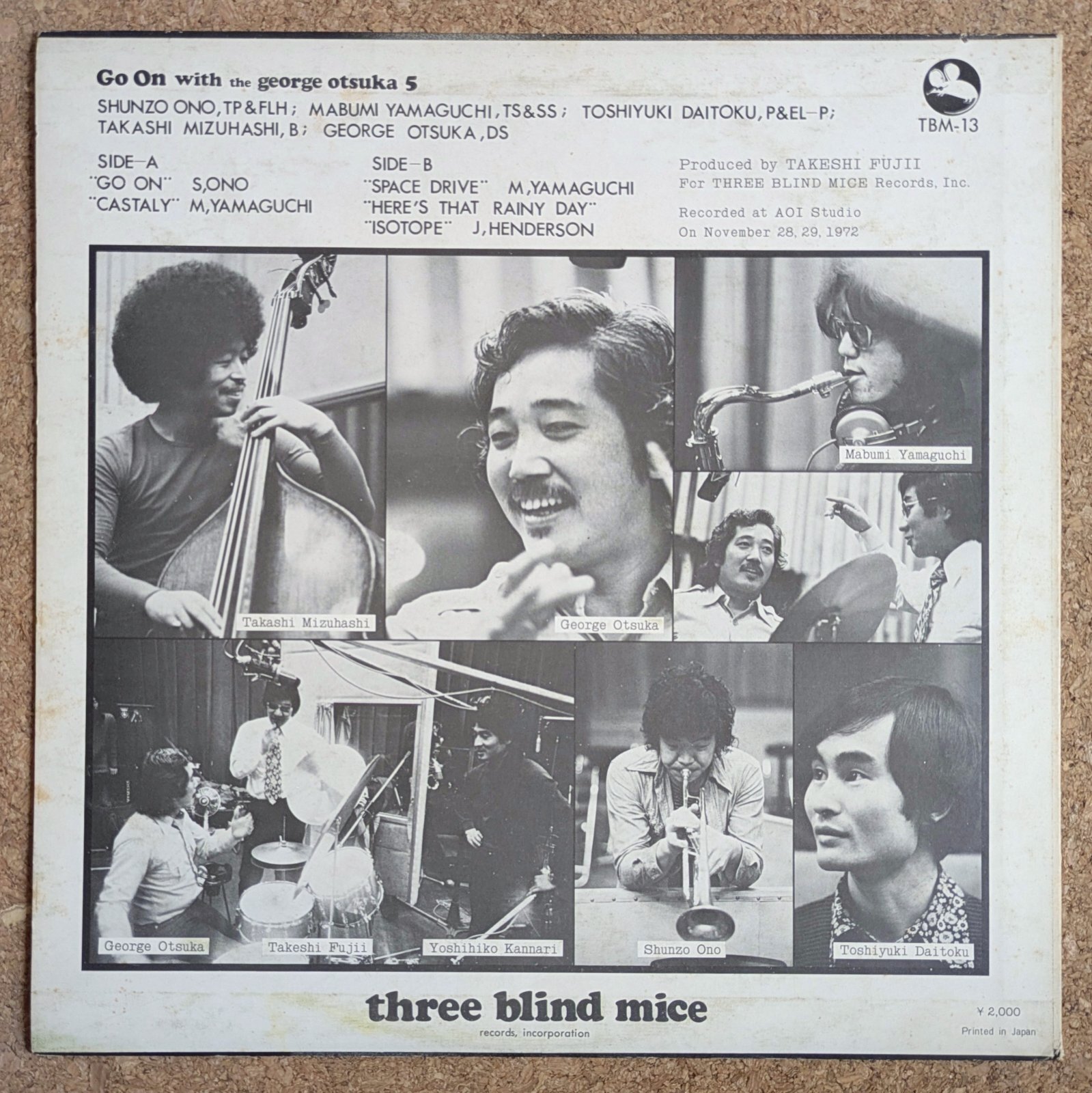 リーダー/サイドマンとして多くの作品を残す名ドラマー、ジョージ大塚の作品。山口真文、大野俊三、大徳俊幸など、当時新進気鋭として活躍していたミュージシャンを従えてのセッションです。端正でかっこ良い「Go On」、ディープに攻める「Space Drive」、Joe Henderson作「Isotope」などを収録。充実の内容です。