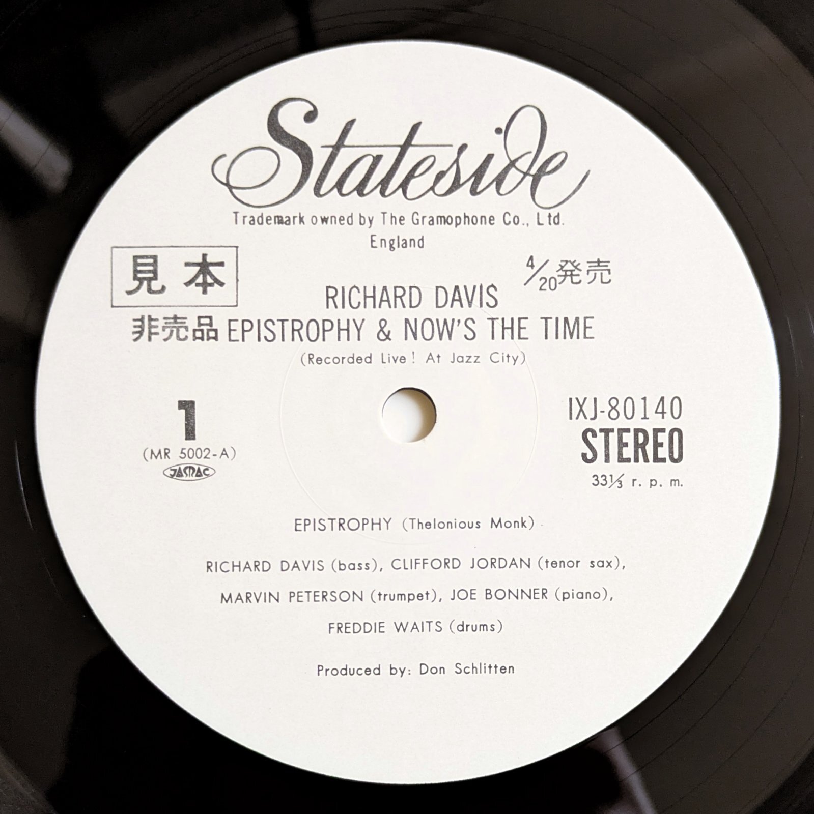 リーダー/サイドマンとして多くの重要作に関わったベーシスト、Richard Davisの作品。Clifford Jordan、Marvin Peterson、Joe Bonner、Freddie Waitsを迎えてのライヴ録音です。「Epistrophy」と「Now's The Time」、ともに重厚で端正で創意に満ちた素晴らしい演奏です。