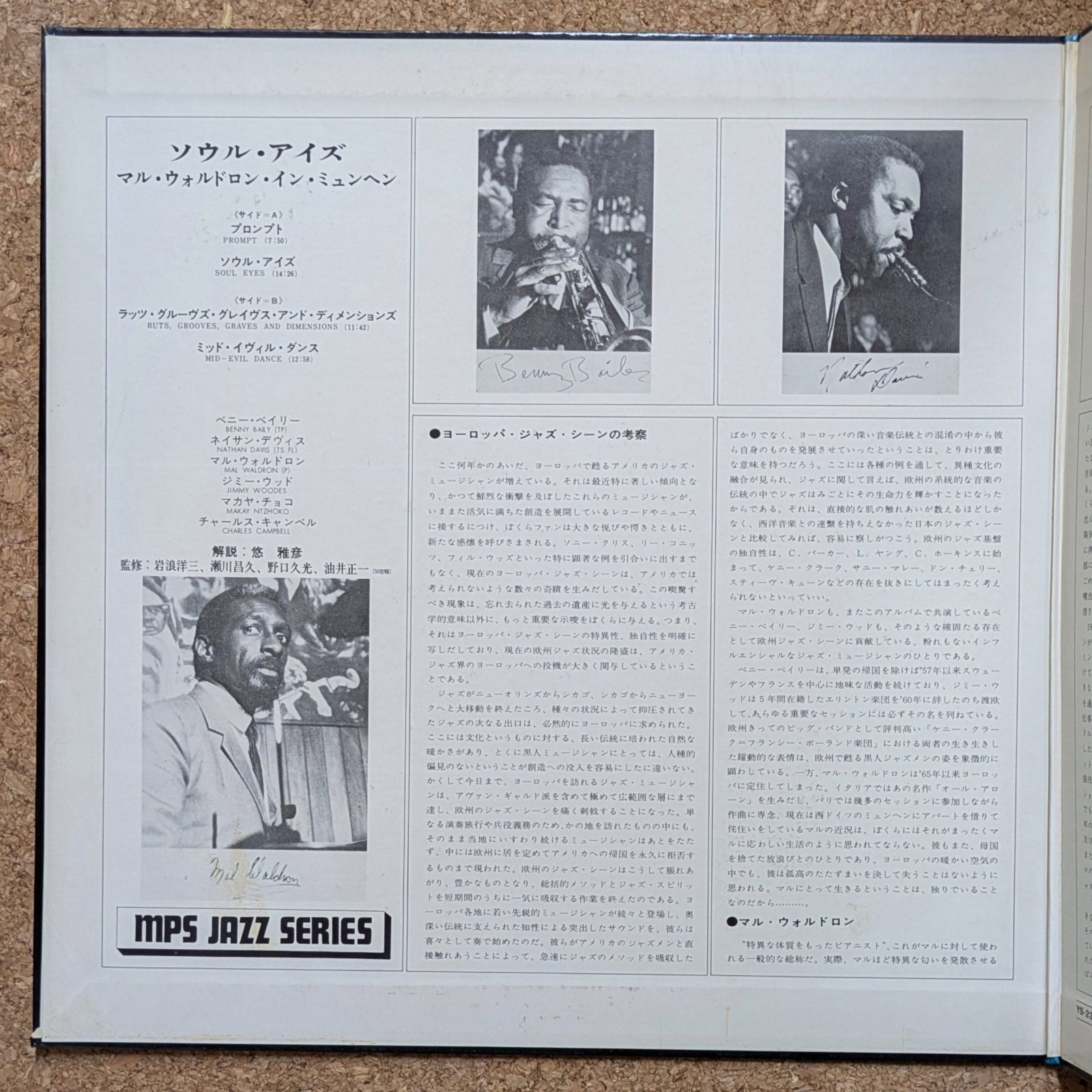 オハイオ出身のトランペット奏者、Benny Baileyを中心に、Nathan Davis、Mal Waldron、Jimmy Woode、Makaya Ntzhokoらが集ったコンボによる、ミュンヘンにおけるライヴ録音。フルートがリードするクールで美しい「Soul Eyes」や、重厚でいて揺らめくような「Ruts, Grooves, Graves & Dimensions」など、全編かっこ良いです。