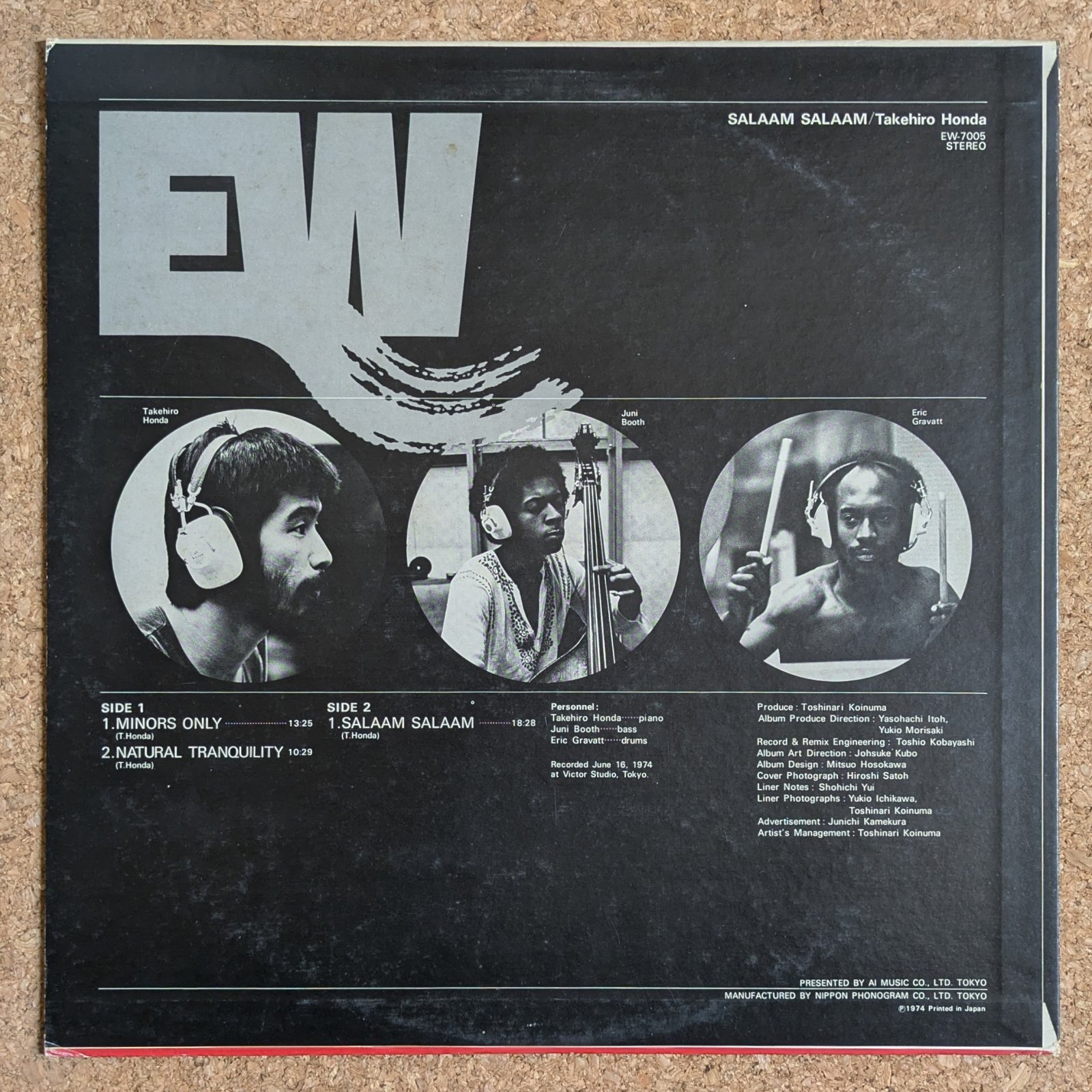 ディープな楽想と力強いプレイで支持されるピアニスト、本田竹曠の作品。Juni Booth、Eric Gravattとのトリオ編成です。圧倒的迫力で疾走する「Minors Only」、美しい「Natural Tranquility」、壮大な「Salaam Salaam」の全3曲、曲も演奏も素晴らしいです。