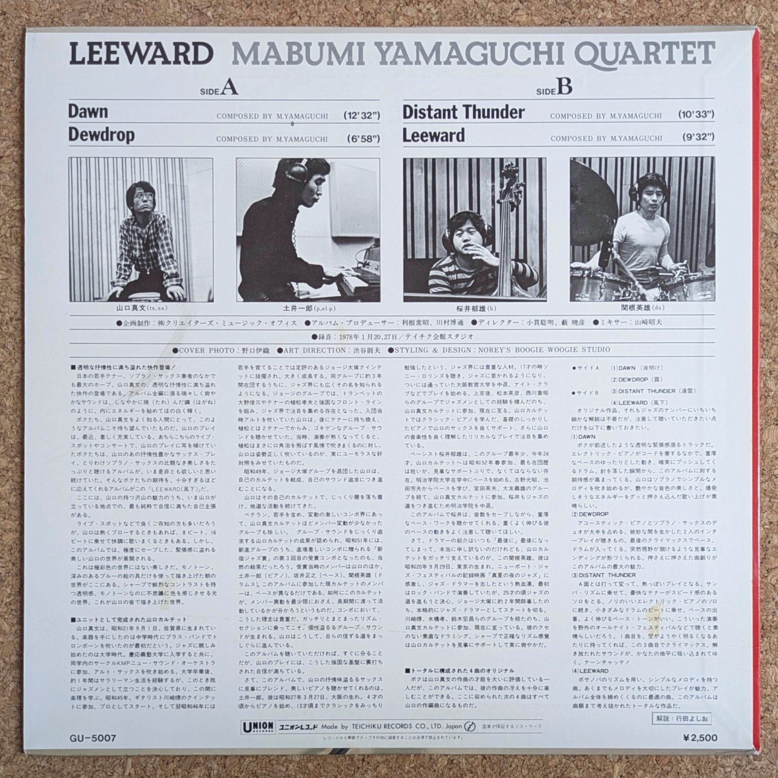 ジョージ大塚や鈴木宏昌との共演で知られるサックス奏者、山口真文のセカンド・アルバム。ヒプノティックで美しいファンキー・ジャズ「Dawn」、疾走感と躍動感がある「Distant Thunder」、ハートウォーミングな「Leeward」など、全編素晴らしいです。土井一郎、桜井邦雄、関根英雄が参加。