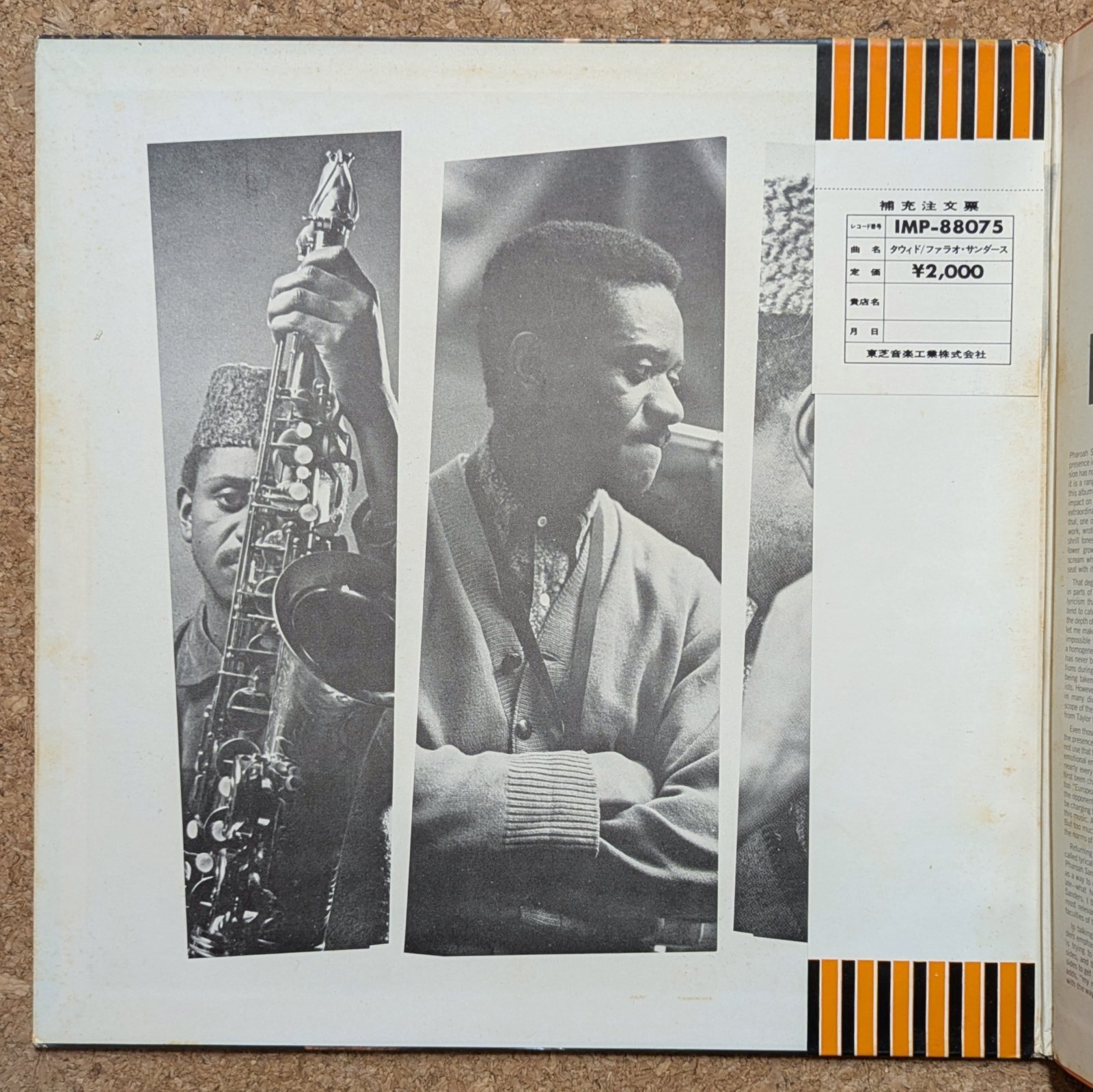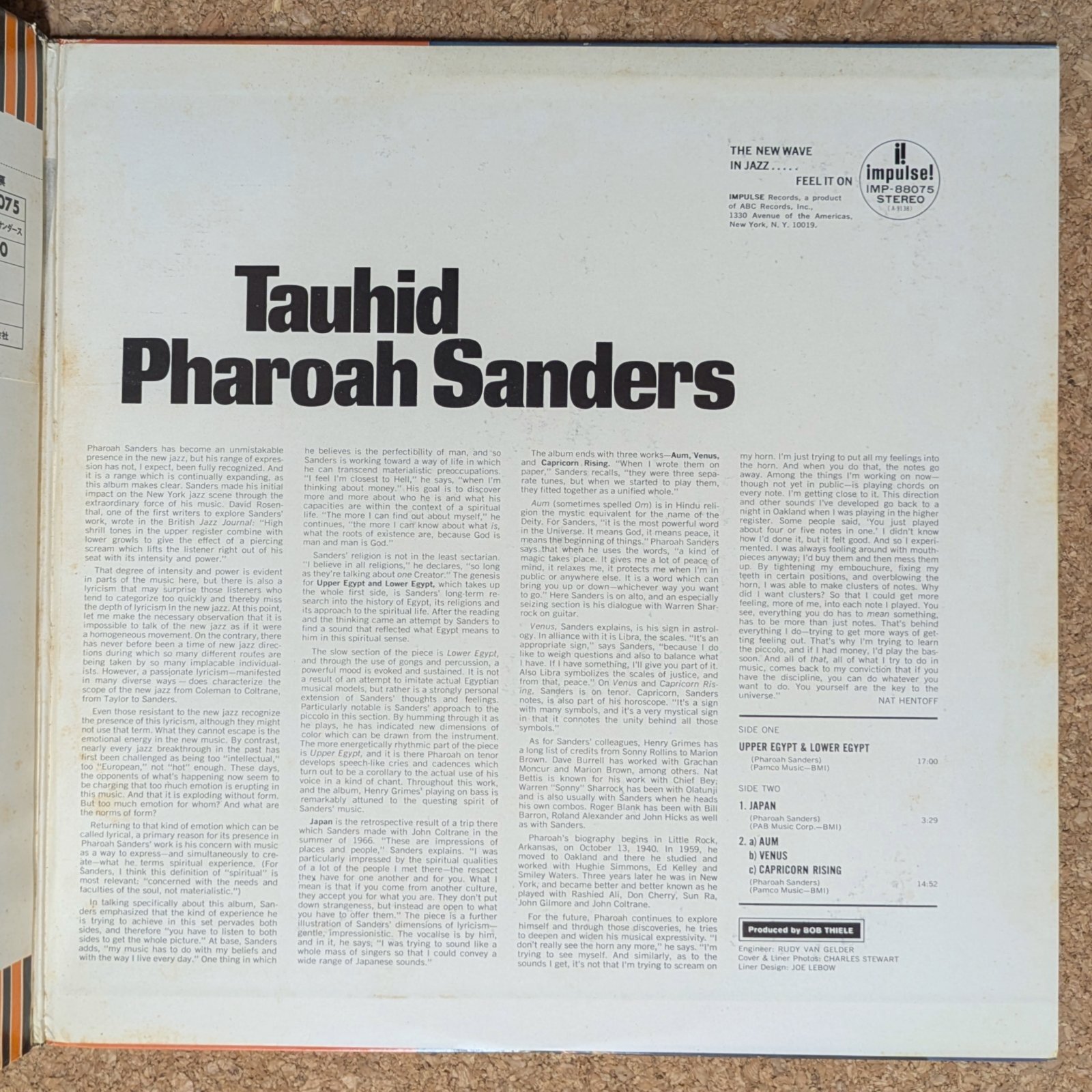 ポスト・コルトレーンのジャズ・シーンを牽引したミュージシャンのひとり、Pharoah SandersのImpulseにおけるファースト・アルバム。幻想的な前半からエモーショナルに疾走する後半へと突入する「Upper Egypt & Lower Egypt」(サウンドファイルは後半部分です)、日本を題材にしたエキゾチックな「Japan」、怒涛の組曲「Aum / Venus / Capricorn Rising」を収録。傑作です。Dave Burrell、Henry Grimes、Roger Blank、Sonny Sharrockなどが参加。
