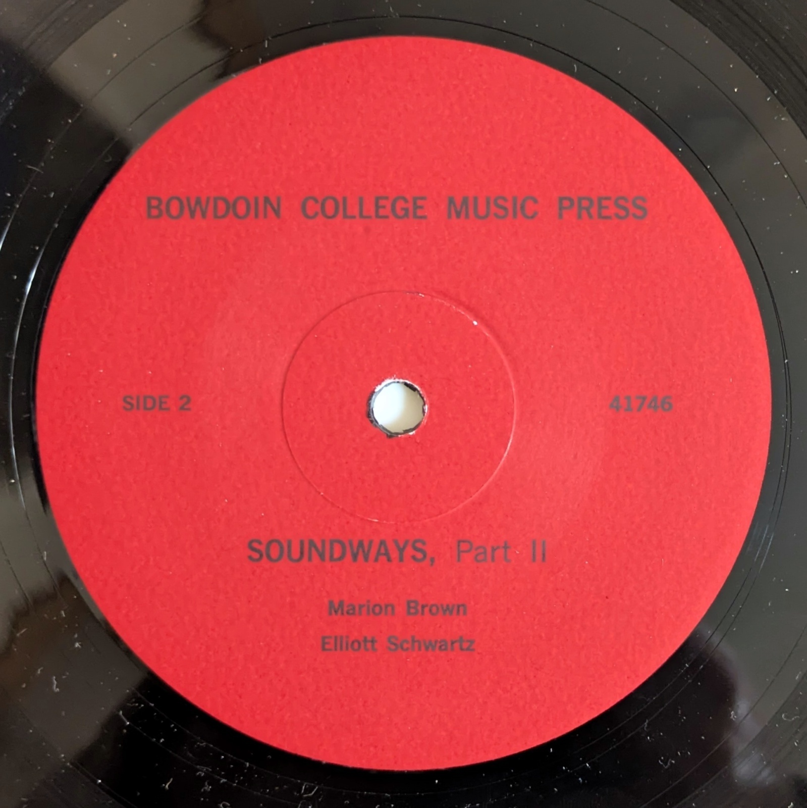 前衛ジャズのシーンを牽引したサックス奏者Marion Brownと、幅広く活躍した作曲家Elliott Schwartzの共演作品。Brownはアルト・サックス、クラリネット、ピアノ、パーカッションを、Schwartzはピアノ、シンセサイザー、パーカッションを演奏。両面にわたって収録された「Soundways」(サウンドファイルは部分的な抜粋です)。創意に満ちた素晴らしい演奏です。