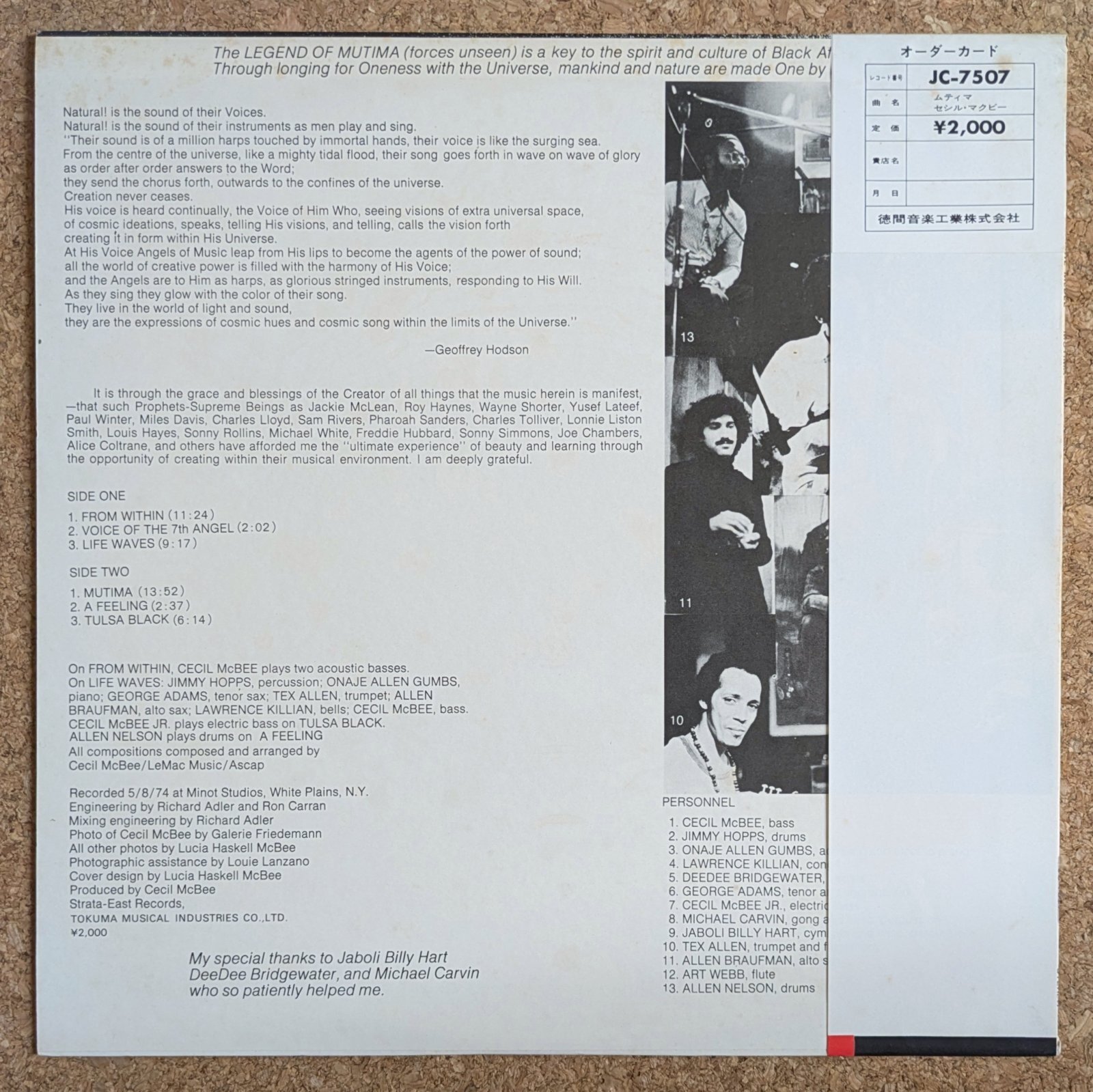 1970年代以降のアフリカン・アメリカンのジャズ・シーンを代表するベーシストのひとり、Cecil McBeeのファースト・アルバム。大らかで美しい「Mutima」、アグレッシヴな「Life Waves」、ディープでファンキーな「Tulsa Black」など、全編素晴らしいです。Dee Dee Bridgewater、George Adams、Billy Hart、Alan Braufmanなどが参加。