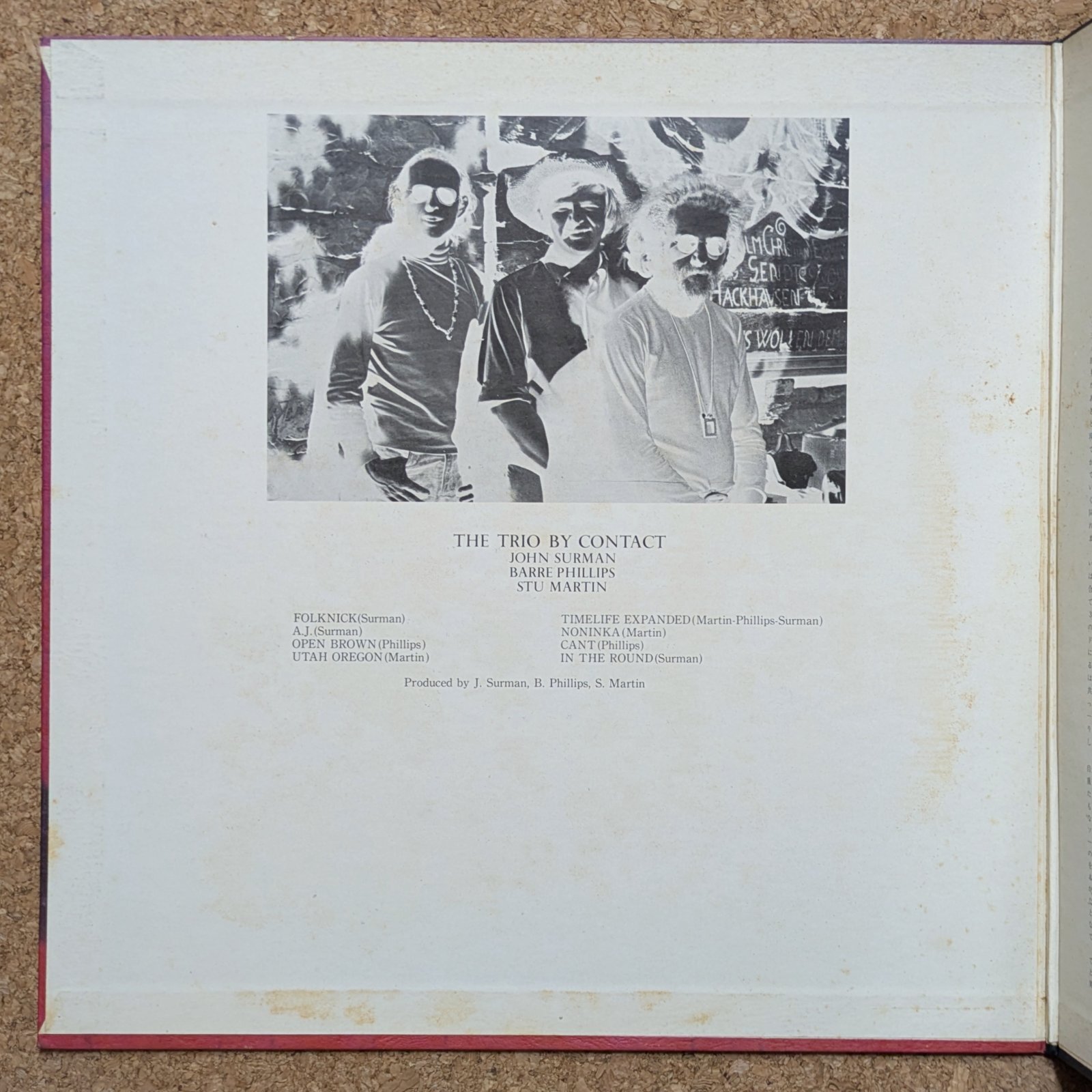 John Surman、Barre Phillips、Stu Martinからなるグループ、The Trioの作品。1971年ロンドン録音の音源です。1980年代終わりにイギリスで再発されますが、当時は日本でのみリリースされました。「Folknick」、「Open Brown」、「Timelife Expanded」、「In The Round」など、鋭角でいて圧の強い強烈な演奏です。