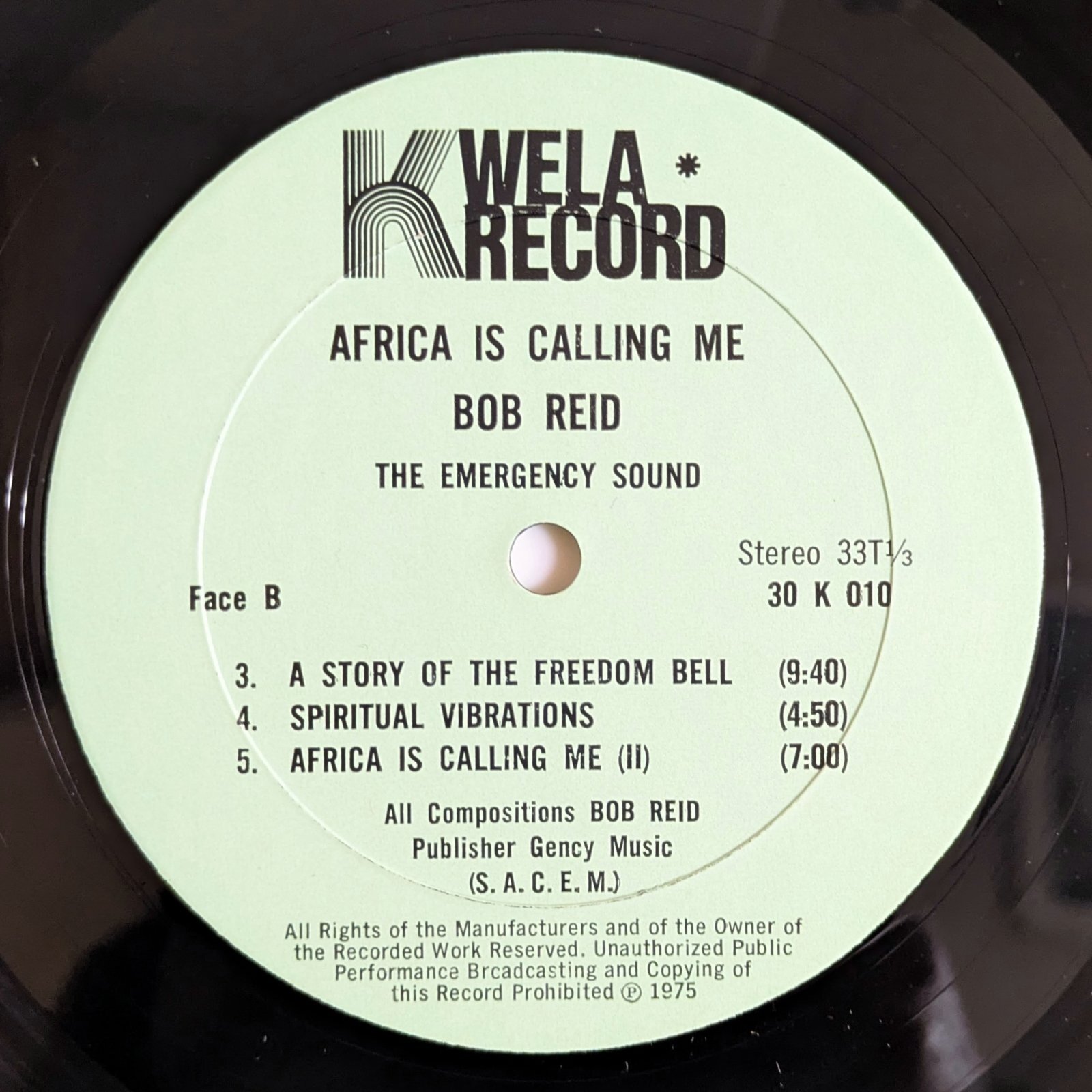 | Label (Cat#) | Kwela Record (30 K 010) |