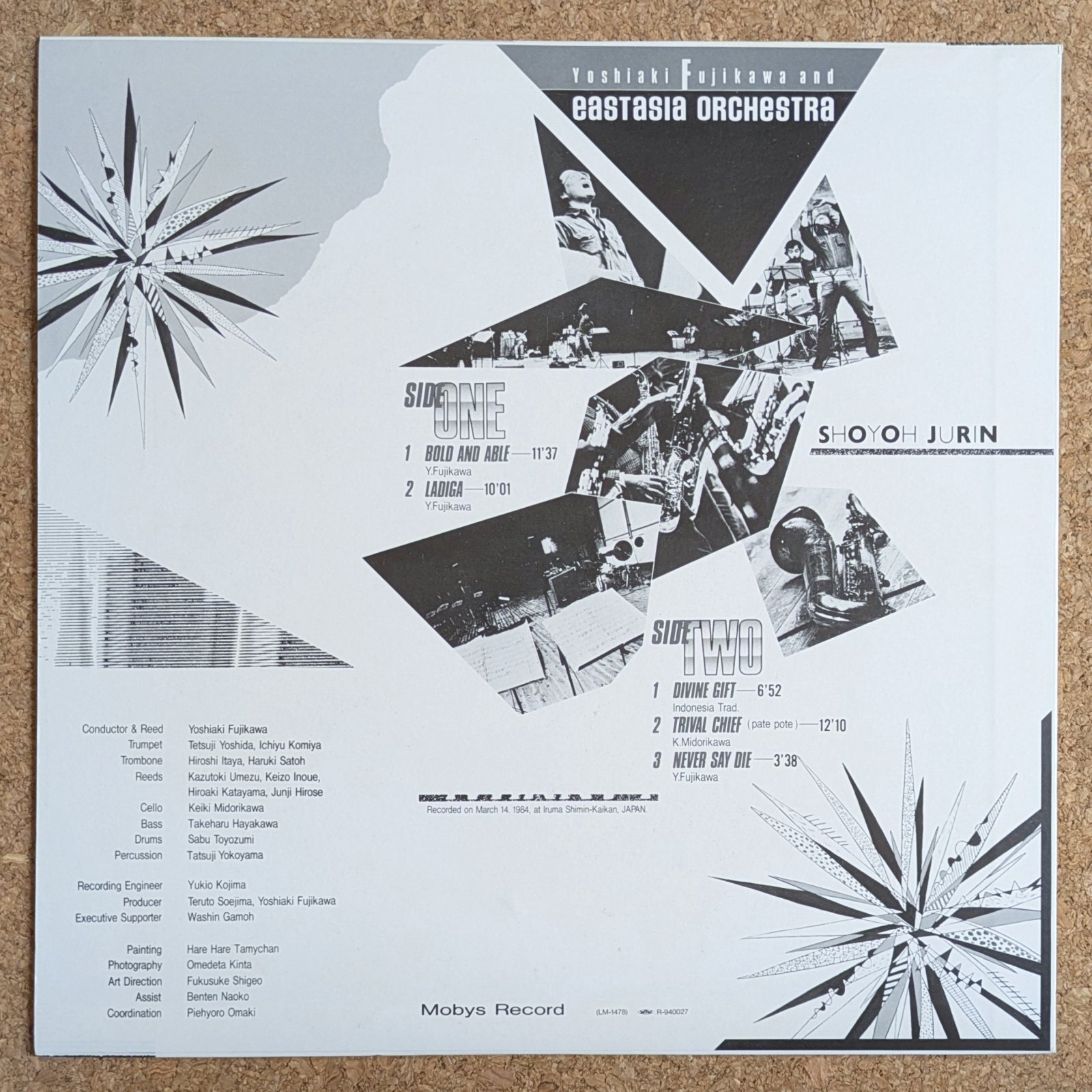 豊住芳三郎や沖至との共演などで知られるリード奏者、藤川義明率いるフリー・ジャズ〜前衛音楽集団、Eastasia Orchestraのファースト・アルバム。プロデュースは副島輝人。「Bold & Able」、「Ladiga」、「Trival Chief」など、全編創意に溢れた重厚かつダイナミックな素晴らしい演奏です。梅津和時、井上敬三、片山広明、翠川敬基、豊住芳三郎などが参加。