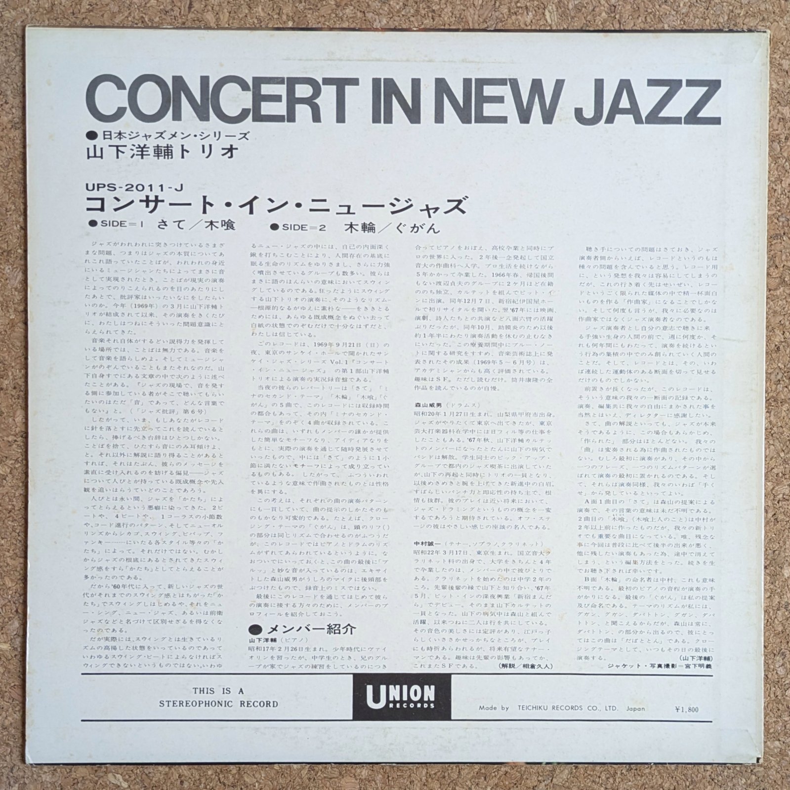 | Label (Cat#) | Union Records / Teichiku Records (UPS-2011-J) |