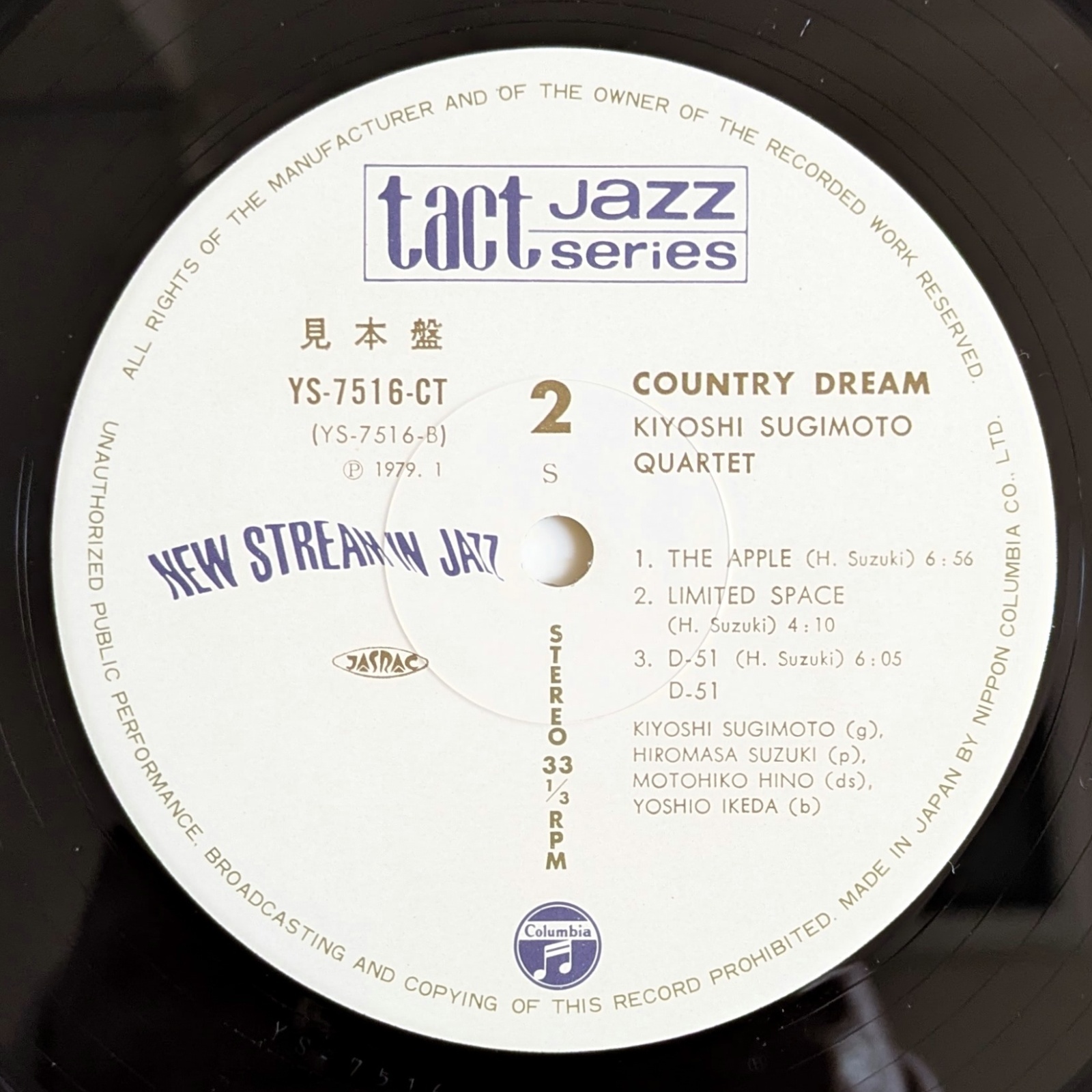リーダー/サイドマンとして幾多の名作を残すギタリスト、杉本喜代志のファースト・アルバム。濃密なグルーヴのなか抒情的なメロディが明滅する「Country Dream」を筆頭に、鋭利でスリリングな「Step Ahead」や「The Apple」、爽快で躍動感に満ちた「D-51」など、全曲素晴らしいです。鈴木宏昌、池田芳夫、日野元彦が参加。