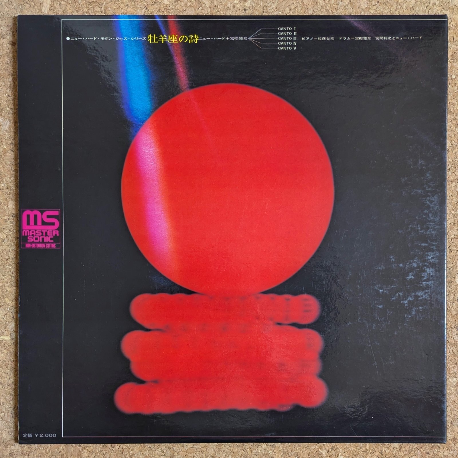 日本を代表するビッグ・バンドのひとつ、宮間利之率いるニュー・ハードと、こちらも日本のジャズ・シーンを牽引したドラマーのひとり富樫雅彦の共演作品。「Canto I」から「Canto V」までの5曲からなる大作組曲です。インプロヴィゼイションを主体とした、創意と緊張感がみなぎる素晴らしい作品です。作・編曲は富樫雅彦。佐藤允彦、豊住芳三郎、山木幸三郎、市原宏祐などが参加。