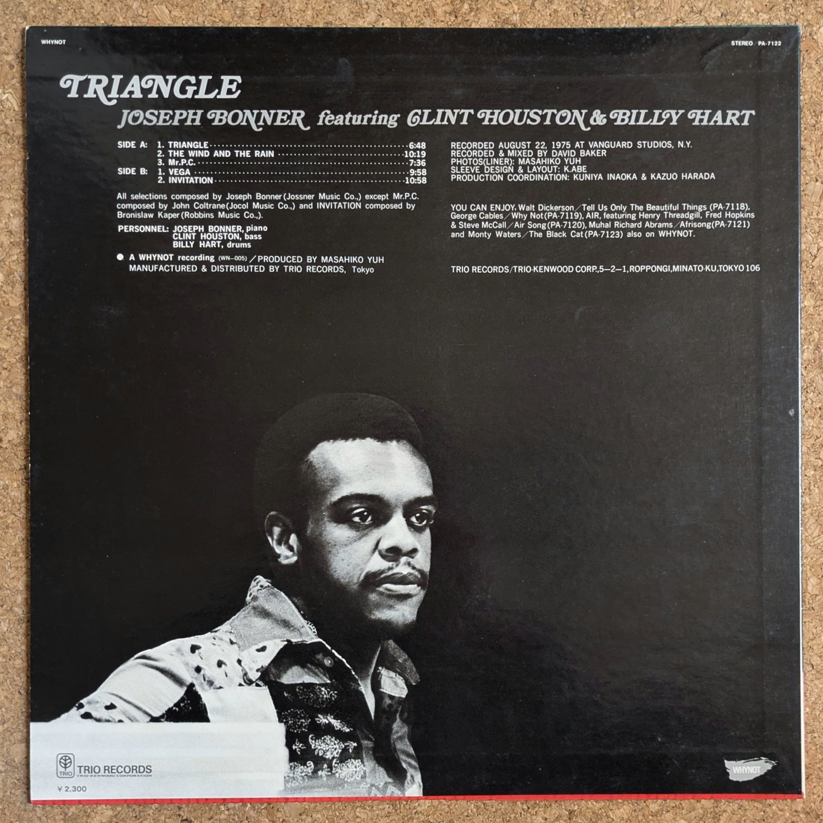 Pharoah SandersやRoy Brooksとの共演などで知られるピアニスト、Joseph Bonnerの日本制作作品。Clint Houston、Billy Hartとのトリオ編成です。ストーミーで情感溢れる「Triangle」や「The Wind & The Rain」など、全曲素晴らしいです。