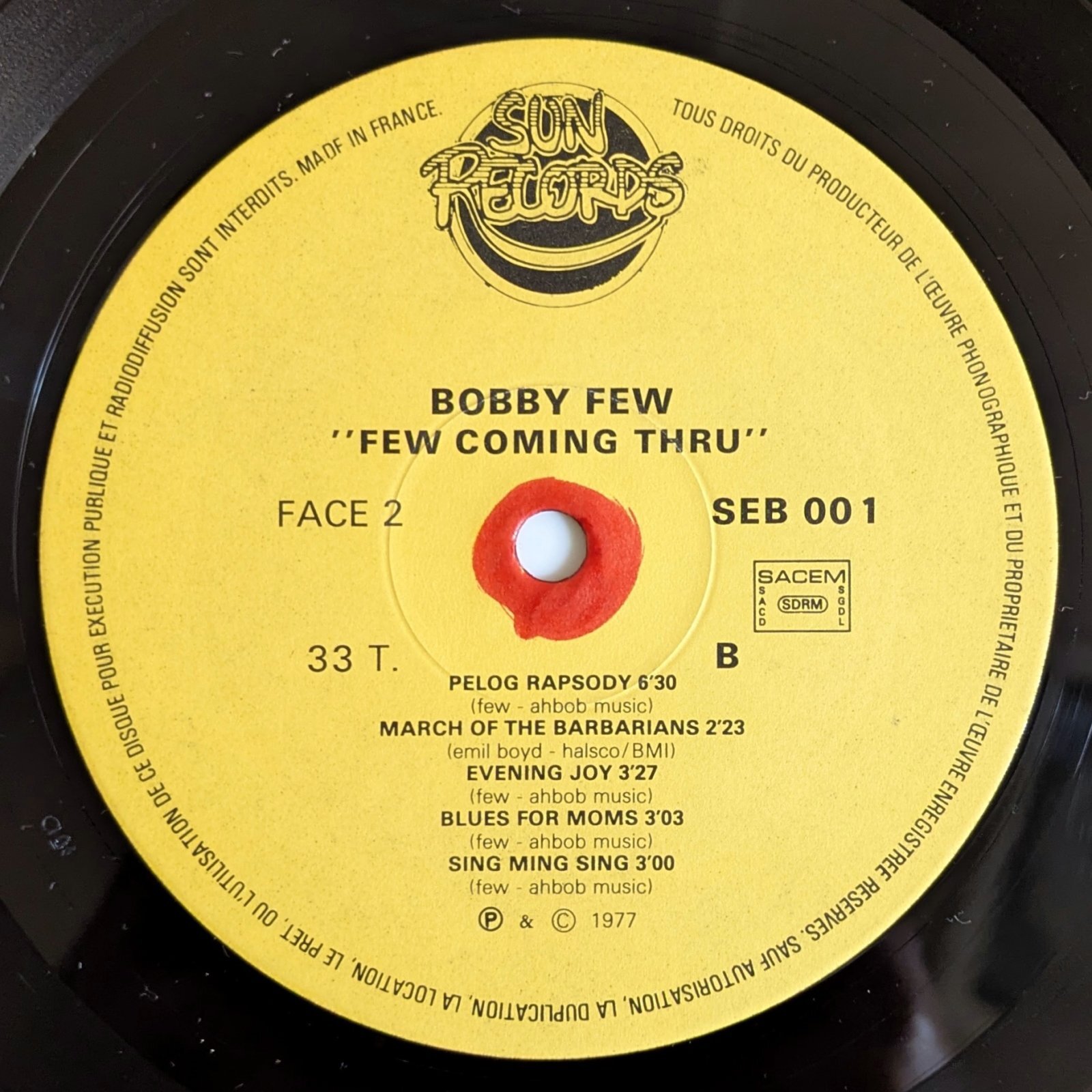 | Label (Cat#) | Sun Records (SEB 001) |