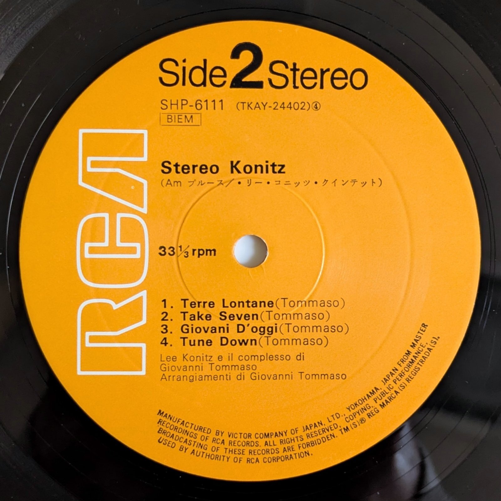 1940年代から活躍した名サックス奏者、Lee Konitzのイタリア録音作品。幻想的で美しいモーダル・ジャズ「Five, Four & Three」を筆頭に、端正な「A Minor Blues」、エキゾチックでリズミックな「Take Seven」、ワルツ・タイムの「Giovani D'Oggi」など、全編素晴らしいです。Enrico Ravaなどが参加。