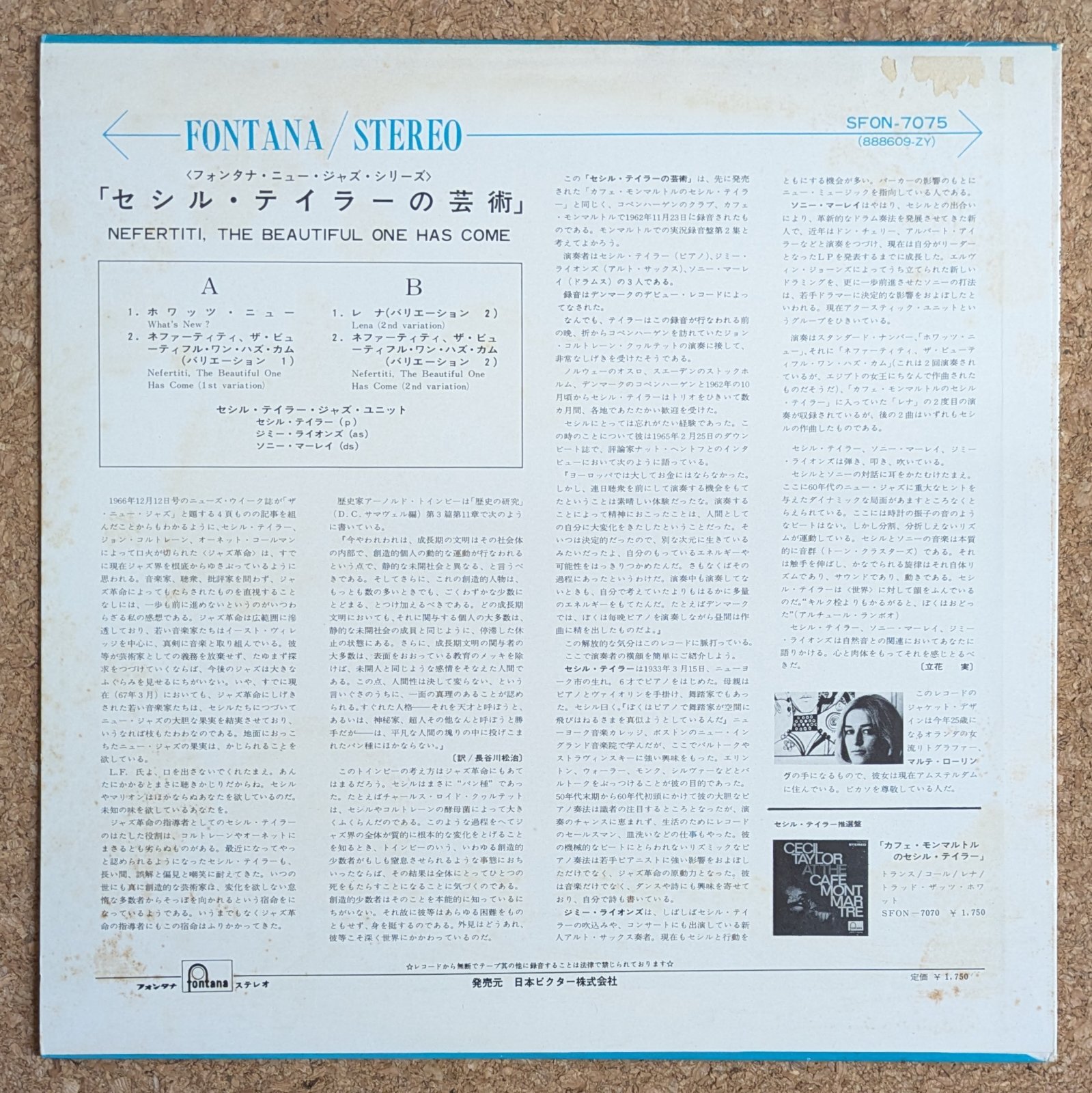前衛ジャズ・シーンを牽引したミュージシャンのひとり、ピアニストCecil Taylorの作品。1962年、コペンハーゲンにおける録音です。「What's New」、「Nefertiti, The Beautiful One Has Come (1st Variation)」、「Lena (2nd Variation)」など、Jimmy Lyons、Sunny Murrayとのトリオで圧巻の演奏を聴かせます。