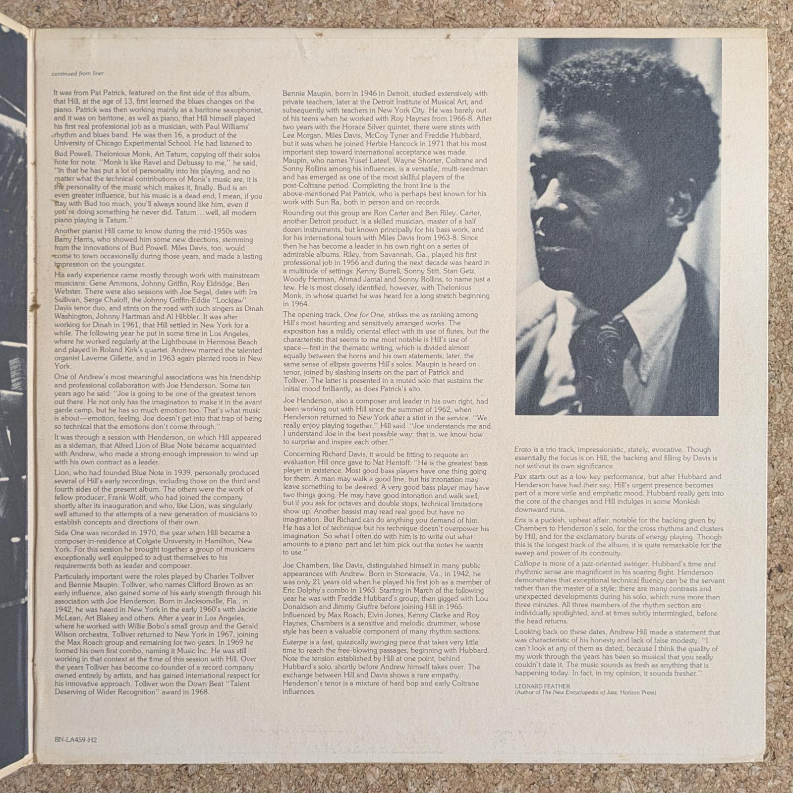 ピアニストAndrew Hillの1965年、1969年、1970年録音の未発表音源を集めた作品。サンプリングもされたダークで美しい「Illusion」やエキゾチックでたおやかな「Poinsettia」など、ファンキーからモーダルまでいずれも端正で素晴しい演奏です。2枚組。