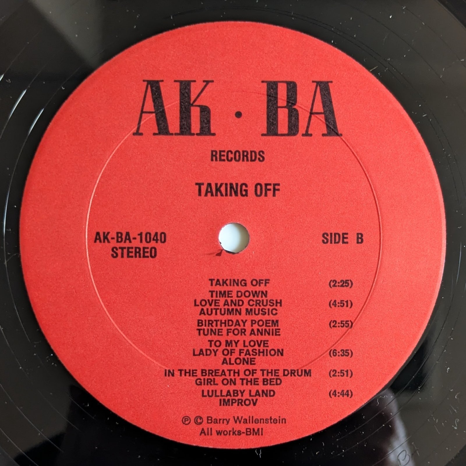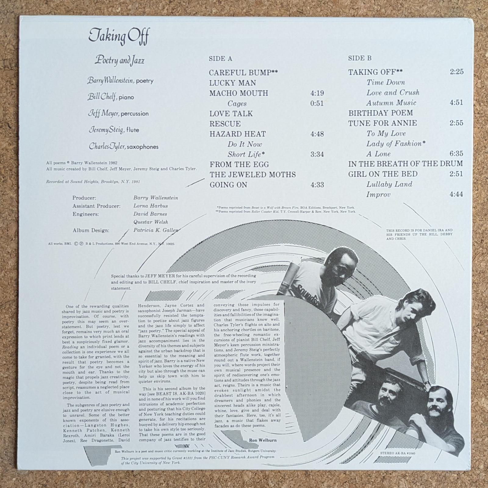 詩人Barry Wallensteinがジャズ・ミュージシャンと共演した作品。Charles TylerやJeremy Steigが参加しています。「Carful Bump - Lucky Man」や「Taking Off」など、ディープでいながら繊細な味わいのある曲が並びます。素晴らしい作品です。