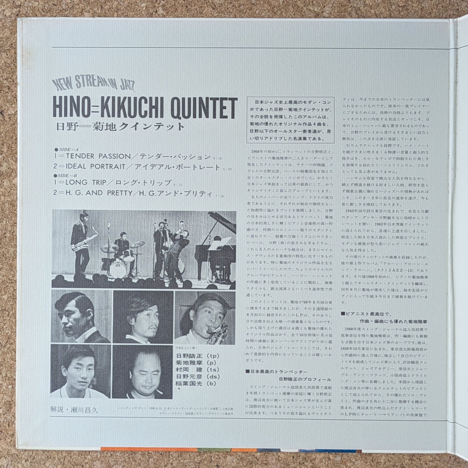 日野皓正と菊地雅章の双頭コンボによる作品。村岡建、稲葉国光、日野元彦が参加。「Tender Passion」、「Ideal Portrait」、「Long Trip」、「H.G. & Pretty」の4曲を収録。全曲菊地のオリジナル。当時の日本におけるジャズ・シーンの成熟と、気鋭のミュージシャンたちの熱気が滲む素晴らしい作品です。