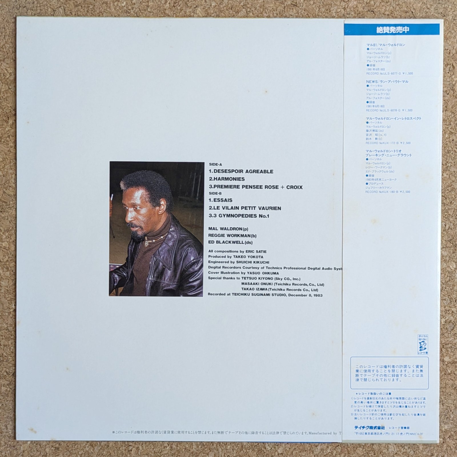 独自の音楽性とプレイ・スタイルで人気を博したピアニスト、Mal Waldronの日本制作作品。Reggie Workman、Ed Blackwellとのトリオによるエリック・サティ集です。「Harmonies」、「Premiere Pensee Rose + Croix」、「Gymnopedies No.1」など、全編素晴らしいです。