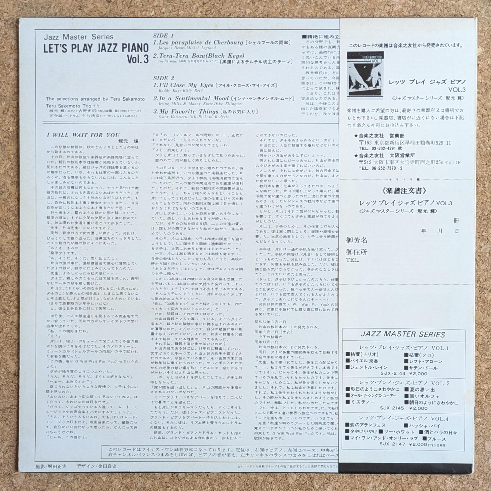 『海を見ていたジョニー』などで知られるピアニスト、坂元輝の作品。ジャズ・ピアノの教則レコードとして制作されたものです。秀逸な編曲によるタイトでグルーヴィな「Teru-Teru Bozu (Black Keys)」を収録。かっこ良いです。