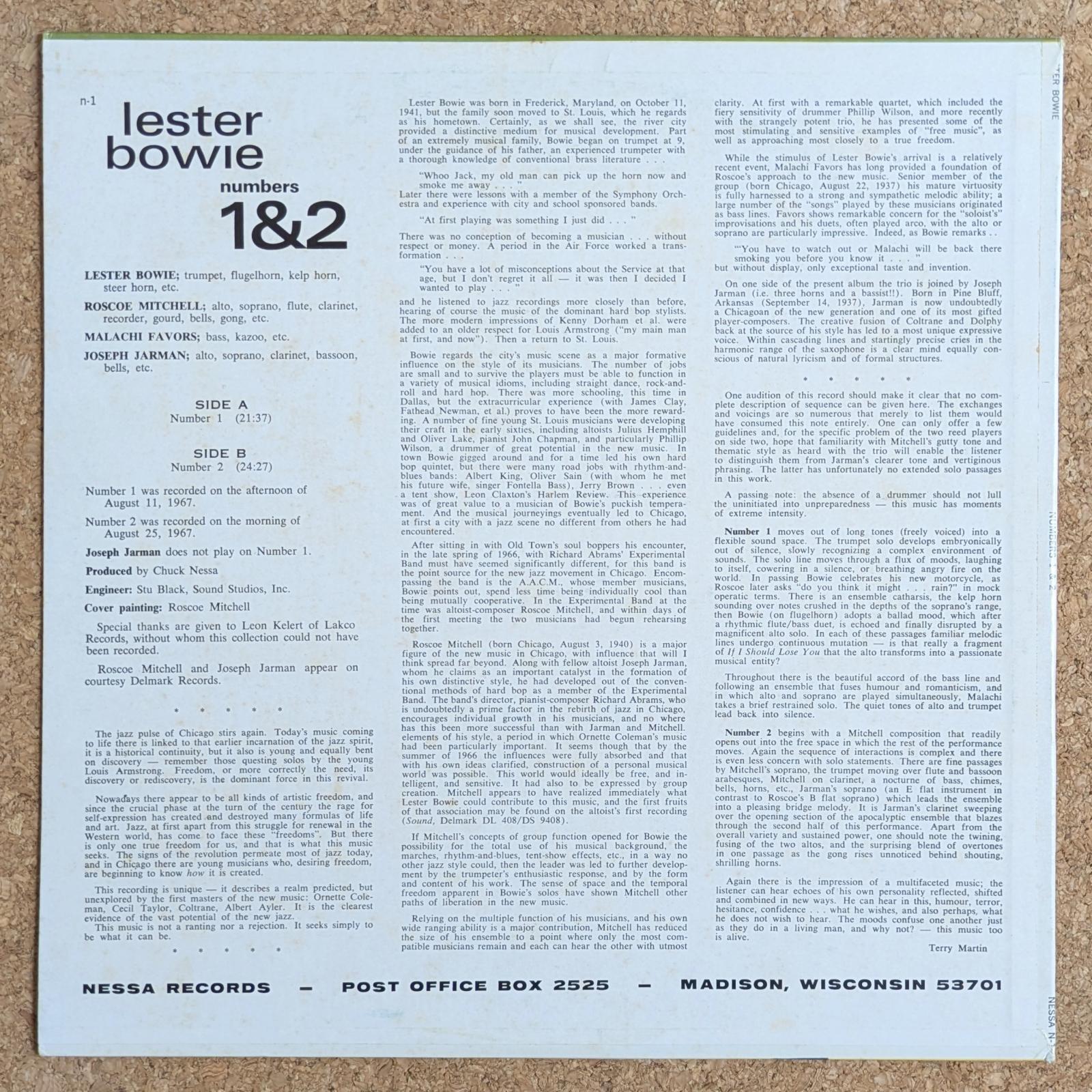 Art Ensemble Of Chicagoの一員として活動するなど広く前衛ジャズのシーンで活躍したトランペット奏者、Lester Bowieのファースト・リーダー・アルバム。「Number 1」と「Number 2」、片面に1曲ずつを収録。充実の演奏です。Roscoe Mitchell、Joseph Jarman、Malachi Favorsが参加。